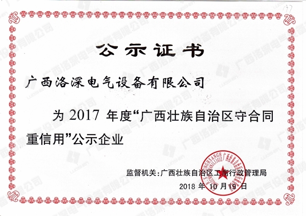 热烈庆祝我公司获“守合同 重信用”公示企业
